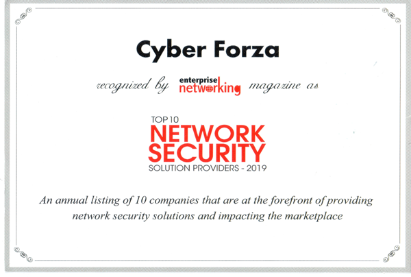 Cyber Forza has been recognized by Enterprise Networking Magazine as“Top 10 Network Security solution providers in 2019