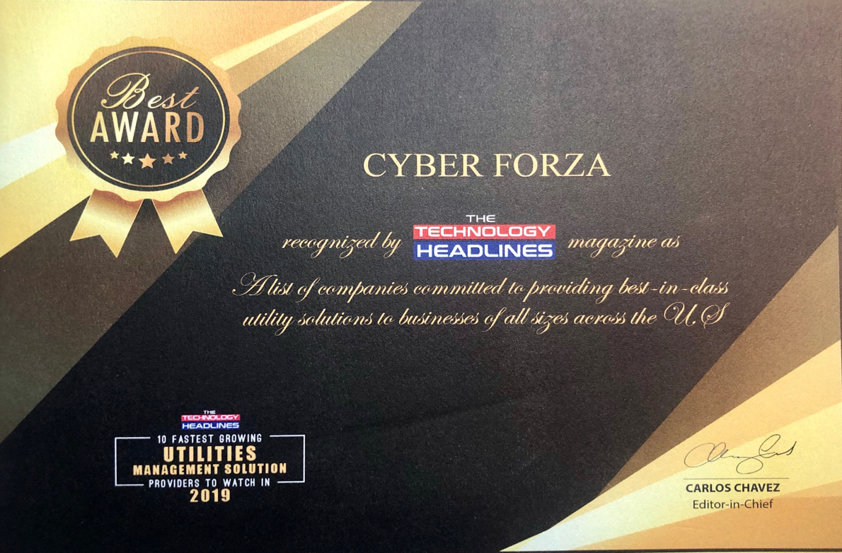 Cyber Forza has been recognized by The Technology Headlines Magazine as“Top 10 Fastest Growing Utilities solution providers in 2019”